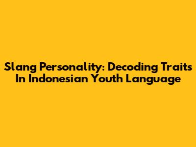 Slang Personality: Decoding Traits In Indonesian Youth Language