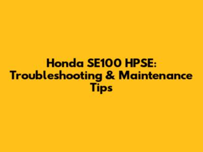 Honda SE100 HPSE: Troubleshooting & Maintenance Tips