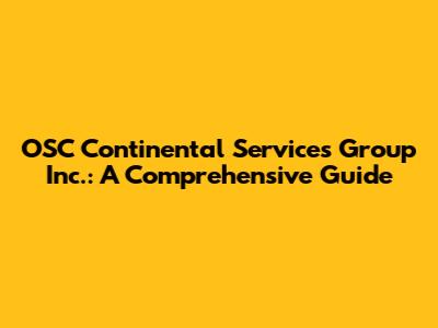 Hey everyone! Ever heard of OSC Continental Services Group Inc.? If you're scratching your head, no worries, we're diving deep into everything you need to know about them. This article is your go-to resource, covering everything from what they do to their impact on the industry. We'll explore their services, their role, and why they matter. So, buckle up, and let's get started.