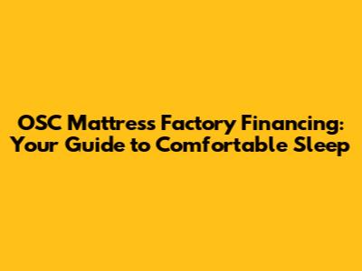 Hey there, sleep enthusiasts! Ever dreamed of sinking into a brand-new, top-quality mattress without the immediate financial pinch? Well, you're in luck! Today, we're diving deep into OSC Mattress Factory financing, exploring how you can snag that perfect bed and sleep soundly knowing you've got a flexible payment plan. We'll cover everything from the basics of factory financing to the specific benefits OSC Mattress Factory offers, ensuring you're well-equipped to make an informed decision. So, grab your favorite comfy blanket, settle in, and let's unravel the secrets to a better night's sleep, made easier with financing.