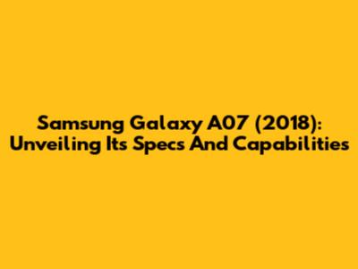 Samsung Galaxy A07 (2018): Unveiling Its Specs And Capabilities