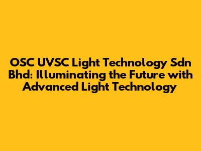 In today's world, where technology is advancing at an unprecedented pace, companies like OSC UVSC Light Technology Sdn Bhd are at the forefront, driving innovation and providing cutting-edge solutions. This article delves into the intricacies of OSC UVSC Light Technology Sdn Bhd, exploring its mission, its products, its impact on various industries, and its vision for the future. Whether you are a tech enthusiast, a business professional, or simply curious about the latest advancements in light technology, this comprehensive overview will provide valuable insights into a company that is truly illuminating the future.