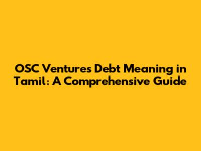 Hey everyone! Ever stumbled upon the term "OSC Ventures Debt" and wondered, "What in the world does that mean?" Well, you're in the right place! We're gonna break down the OSC Ventures debt meaning in Tamil, making it super easy to understand. Forget confusing jargon; we're keeping it simple and relatable. This isn't just about definitions; we're diving deep to give you a full understanding of what this means, its implications, and how it works in the real world. Get ready to have your questions answered, and to walk away feeling confident about your grasp of OSC Ventures debt! We'll cover everything from the basic meaning to how it affects businesses and individuals alike, all tailored for a Tamil-speaking audience. Lets get started!