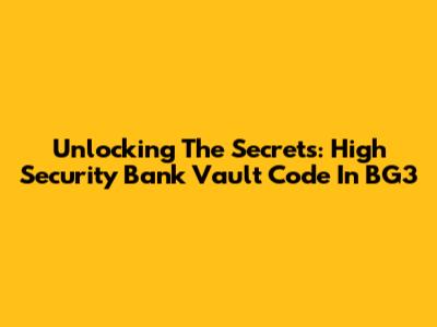 Unlocking The Secrets: High Security Bank Vault Code In BG3