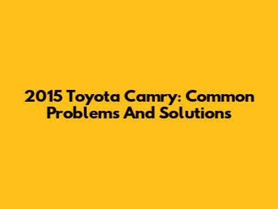 2015 Toyota Camry: Common Problems And Solutions
