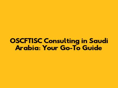 Why is OSCFTISC Consulting Important in Saudi Arabia?