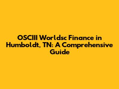Hey guys! Ever heard of OSCIII Worldsc Finance? If you're in Humboldt, TN, or even just curious about financial services in the area, you're in the right place. We're diving deep into what OSCIII Worldsc Finance is all about, what they offer, and how they can potentially help you with your financial needs. This guide is designed to be super informative and easy to understand, so whether you're a finance whiz or just starting out, you'll find something valuable here. Let’s get started and explore the world of finance, Humboldt style!