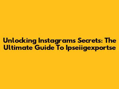 Unlocking Instagram's Secrets: The Ultimate Guide To Ipseiigexportse