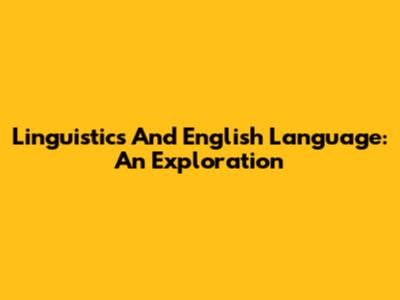 Linguistics And English Language: An Exploration