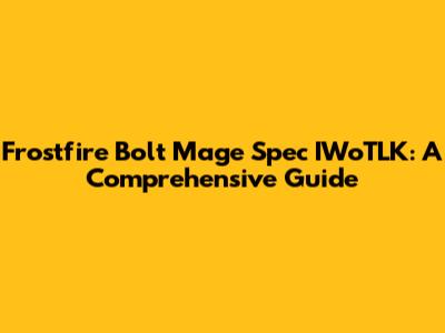 Frostfire Bolt Mage Spec IWoTLK: A Comprehensive Guide