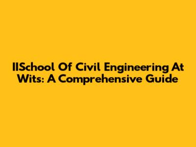 IISchool Of Civil Engineering At Wits: A Comprehensive Guide