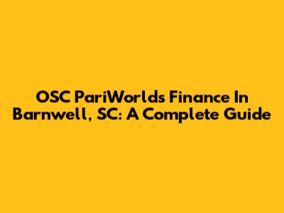OSC PariWorld's Finance In Barnwell, SC: A Complete Guide