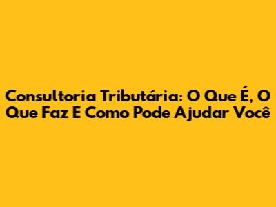 Consultoria Tributária: O Que É, O Que Faz E Como Pode Ajudar Você