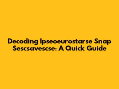 Decoding Ipseoeurostarse Snap Sescsavescse: A Quick Guide