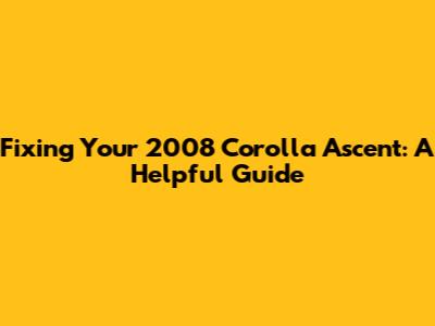 Fixing Your 2008 Corolla Ascent: A Helpful Guide
