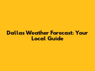 Dallas Weather Forecast: Your Local Guide