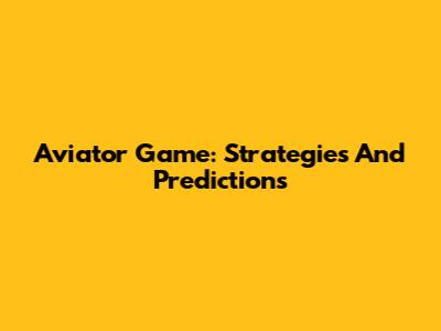 Aviator Game: Strategies And Predictions