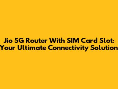 Jio 5G Router With SIM Card Slot: Your Ultimate Connectivity Solution