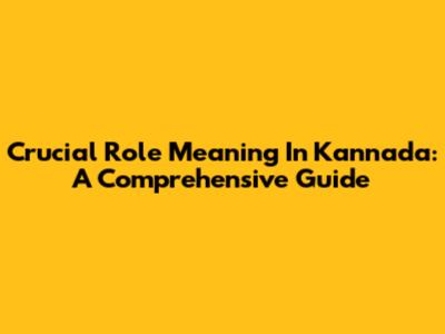 Crucial Role Meaning In Kannada: A Comprehensive Guide