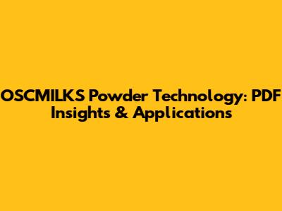 OSCMILKS Powder Technology: PDF Insights & Applications