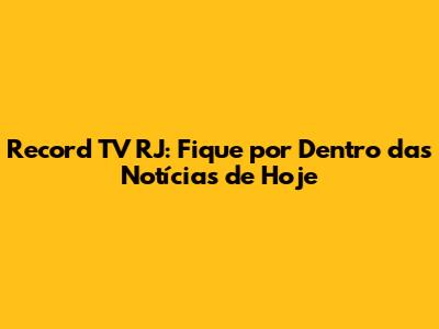 Record TV RJ: Notícias em Tempo Real