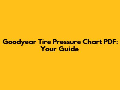 Goodyear Tire Pressure Chart PDF: Your Guide