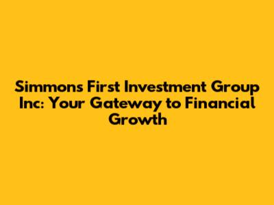 Hey everyone! Let's dive into the world of Simmons First Investment Group Inc. This isn't just another financial institution; it's a place where you can explore various investment opportunities and potentially grow your wealth. We're going to break down what they do, how they operate, and what you might expect when considering them as a partner in your financial journey. So, buckle up, grab your favorite beverage, and let's get started on understanding Simmons First Investment Group Inc together.