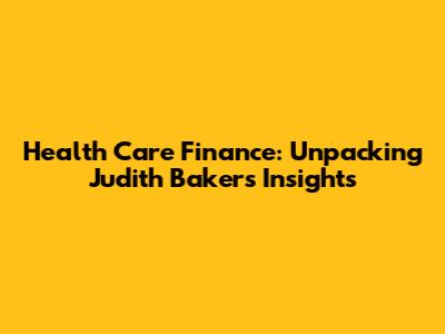 Health Care Finance: Unpacking Judith Baker's Insights