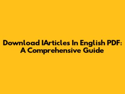 Download IArticles In English PDF: A Comprehensive Guide