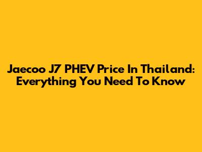 Jaecoo J7 PHEV Price In Thailand: Everything You Need To Know