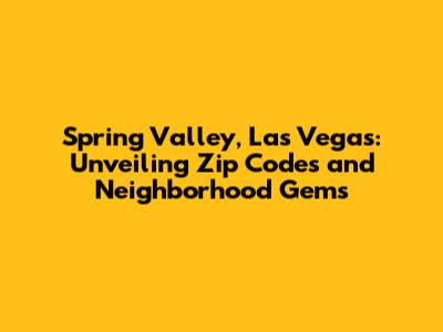 What are the main zip codes for Spring Valley, Las Vegas? The primary zip codes are 89147, 89117, and parts of 89103, 89118, and 89135.