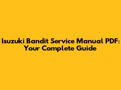 Isuzuki Bandit Service Manual PDF: Your Complete Guide