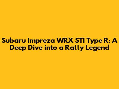 Hey car enthusiasts! Ever heard of the Subaru Impreza WRX STI Type R? If not, you're in for a treat! This isn't just any car; it's a legend, a beast, a pure driving experience that has captivated the hearts of car lovers worldwide. Today, we're going to dive deep into what makes the Type R so special, exploring its history, specs, and why it remains a coveted icon. So, buckle up, and let's get started!