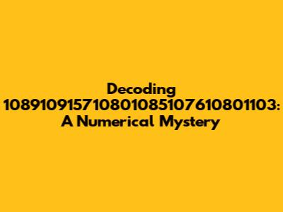 Decoding 108910915710801085107610801103: A Numerical Mystery