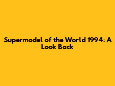 \Hey guys! Let's take a trip down memory lane and revisit the iconic Supermodel of the World competition from 1994. This wasn't just a beauty pageant; it was a cultural phenomenon that shaped the fashion industry and gave us some unforgettable faces. In this article, we'll delve into what made this particular year so special, who the standout contestants were, and the lasting impact it had on the world of modeling. Get ready for a nostalgic dive into the glitz, glamour, and groundbreaking moments of 1994's Supermodel of the World!