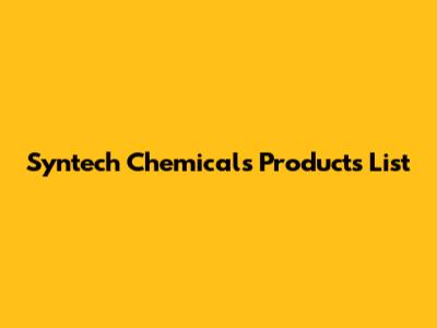 Syntech Chemicals: Your Go-To Product List