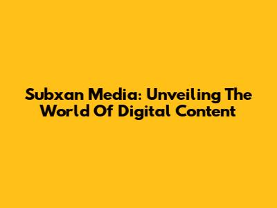 Subxan Media: Unveiling The World Of Digital Content