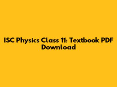ISC Physics Class 11: Textbook PDF Download