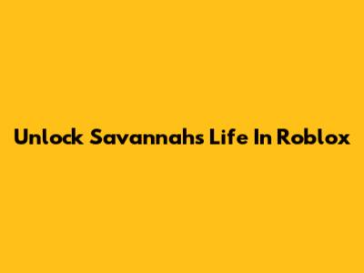 Unlock Savannah's Life In Roblox