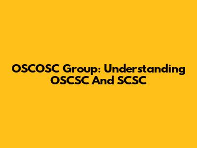 OSCOSC Group: Understanding OSCSC And SCSC
