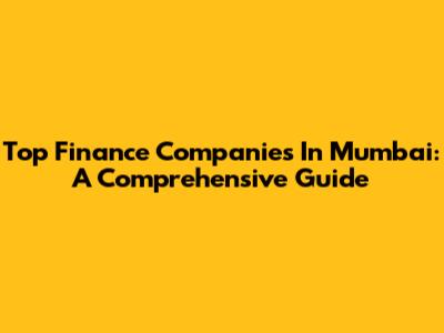 Top Finance Companies In Mumbai: A Comprehensive Guide