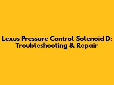 Lexus Pressure Control Solenoid D: Troubleshooting & Repair