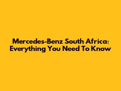 Mercedes-Benz South Africa: Everything You Need To Know