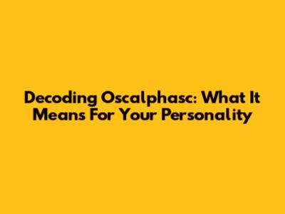 Decoding Oscalphasc: What It Means For Your Personality