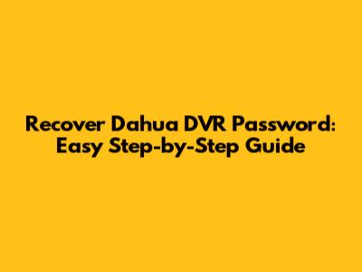 Recover Dahua DVR Password: Easy Step-by-Step Guide