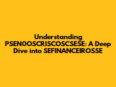 Let's dive into the world of PSEN0OSCRISCOSCSESE SEFINANCEIROSSE. It might sound like a mouthful, but breaking it down will help us understand its importance and relevance. In this comprehensive guide, we'll explore every facet of this term, making it easy for everyone, regardless of their background, to grasp the core concepts. So, buckle up, guys, because we're about to embark on a journey into the intricate details of PSEN0OSCRISCOSCSESE SEFINANCEIROSSE.