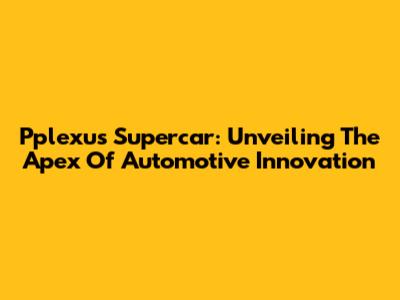 Pplexus Supercar: Unveiling The Apex Of Automotive Innovation