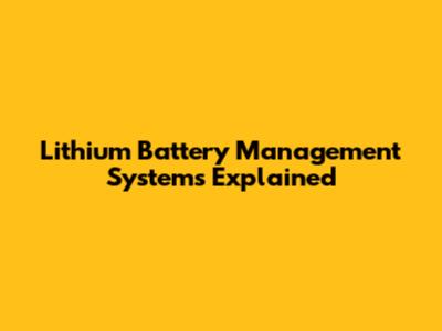 Lithium Battery Management Systems Explained