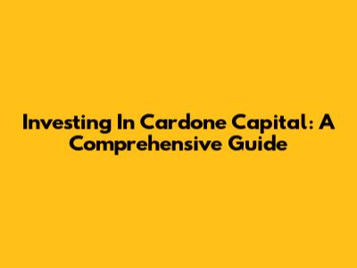 Investing In Cardone Capital: A Comprehensive Guide