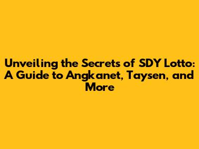 Hey guys! Ever wondered how to crack the code of SDY Lotto? Well, you're in luck! Today, we're diving deep into the world of SDY Lotto, exploring the key players like Angkanet, Taysen, and other insider tips and tricks to boost your chances. This guide is designed to be your go-to resource, covering everything from understanding the basics to advanced strategies, all aimed at helping you navigate the exciting world of lotto. We will be discussing the crucial role of Angkanet, Taysen data, and how to utilize them effectively. Get ready to transform your approach to SDY Lotto and become a more informed player!